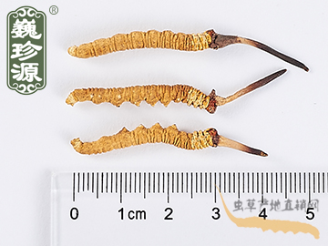 蟲(chóng)草規(guī)格大小:理論上為5條/克(合2500條/斤),每條均重是0.2克;實(shí)際上規(guī)格會(huì)有10%以?xún)?nèi)的誤差,即實(shí)際規(guī)格在5~5.5條之間/克(合2500~2750條/斤),每條均重在0.18~0.2克之間。